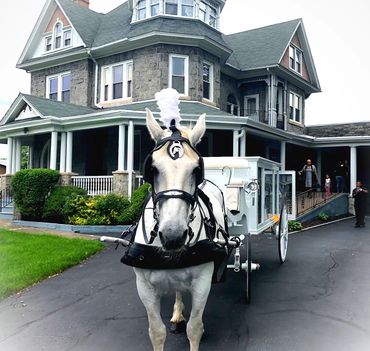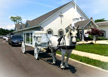 located in New Jersey provides authentic white horse drawn Funeral Hearse Carriages for Burial Interment Services